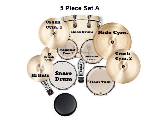 Prvi set (komplet) bubnjeva treba da sadrži najosnovnije elemente: bas bubanj, doboš, kontra činelu, jednu crash činelu, jednu ride činelu, jedan tom i jedan flor tom, kao i prateću pedalu za bas bubanj i pripadajuće stalke za činele i naravno stolica. Za početnike (bilo kog uzrasta i starosti) je jako bitno da su mehanički delovi ispravni i da se lako mogu podešavati po potrebama (čivije, šrafovi na stalcima…).
