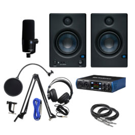 Paketi sadrže studijske monitore, slusalice, kablazu, audio interfejs, kondenzatorske mikrofone kao i odgovarajucu opremu za kvalitetan studijski rad.