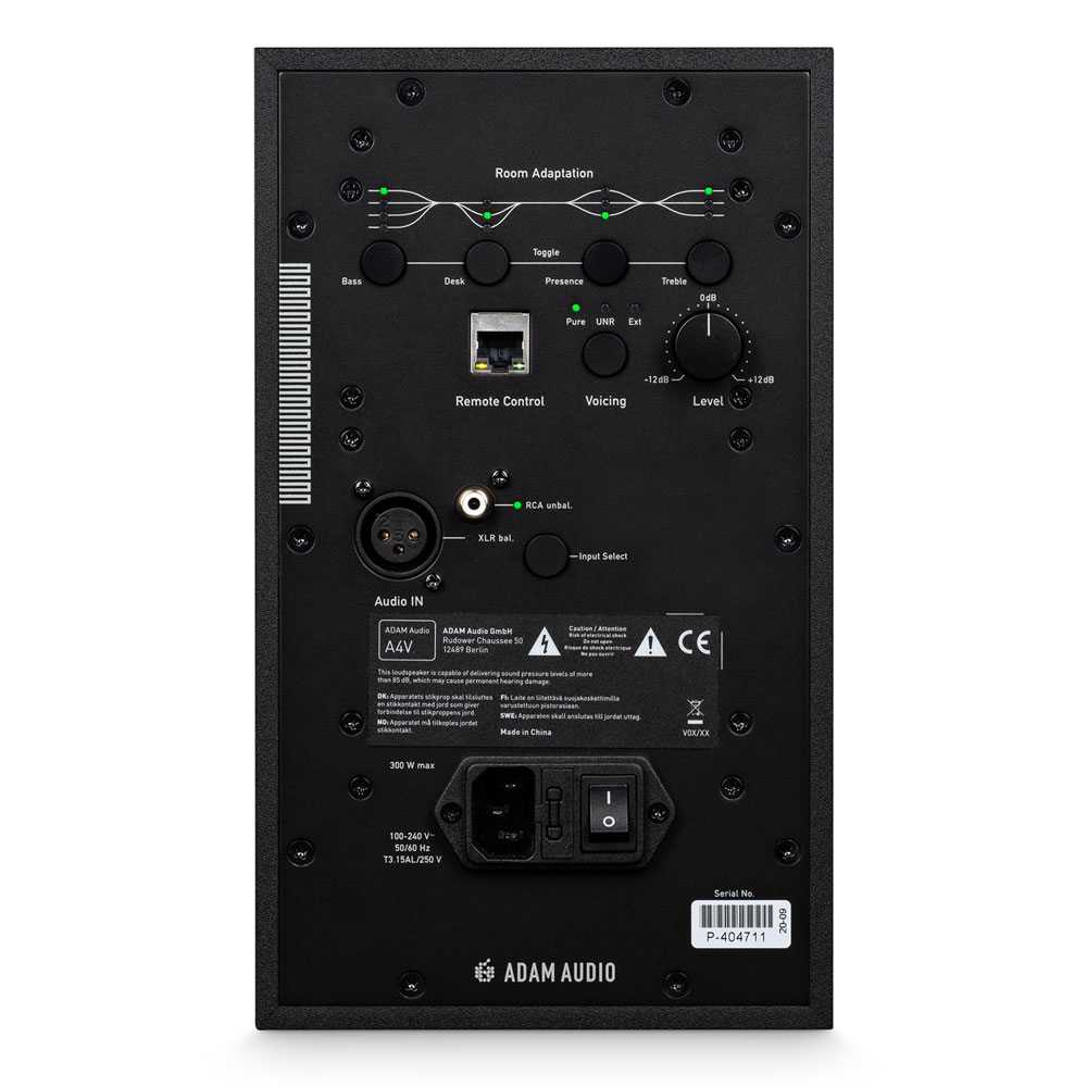 - Ovaj dvosmerni zvučnik sadrži klasični X-ART visokotonac i 4-inčni woofer izrađen od istih višeslojnih mineralnih vlakana (MLM) kao i drugi zvučnici iz A serije. Ugrađeni DSP procesor omogućava da zvuk precizno podesite prema zahtevnim situacijama pri snimanju i reprodukciji audio materijala. Sa frekvencijskim rasponom od 53 Hz do 42 kHz, A4V može prihvatiti širok spektar audio aplikacija - od snimanja podcasta do miksa gudačkih kvarteta, a odlično će se uklopiti u sisteme sa više zvučnika.