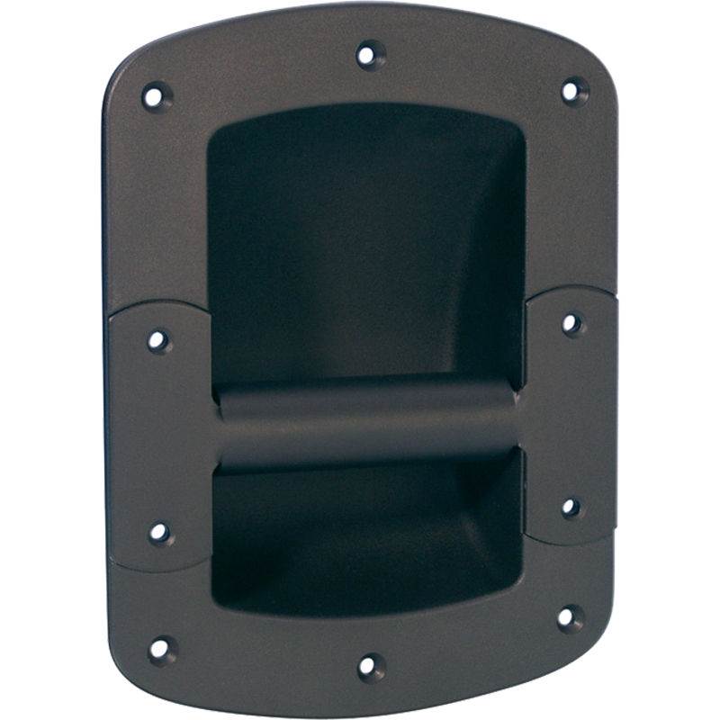 čelična ručica visokog kvaliteta u kombinaciji sa plastičnim kućištem za izradu kofera. Montaža na 10 rupa. Crne boje (powder coated). Idealna za veće kofere, box-ove ili kutije koje će služiti za transport težih ureðaja.