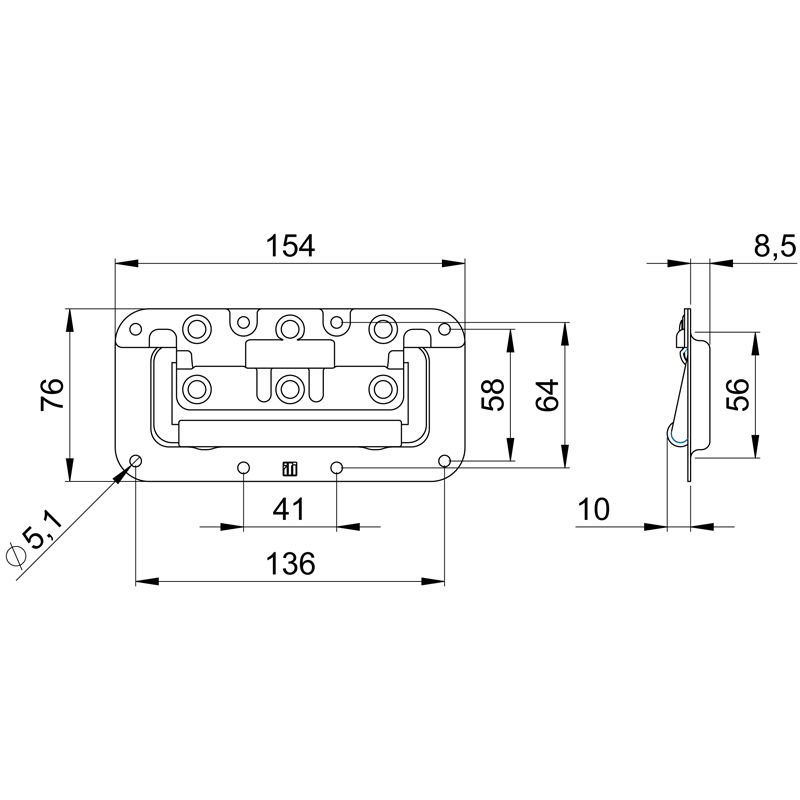 Small metalna ručica sa oprugom za izradu kofera. Sama ručica je presvučena plastikom. Montaža na 8rupa. Tacna je izraðena od pocinkovanog lima. Jedan od najpopularnijih modela ručica za izradu flight case kofera.