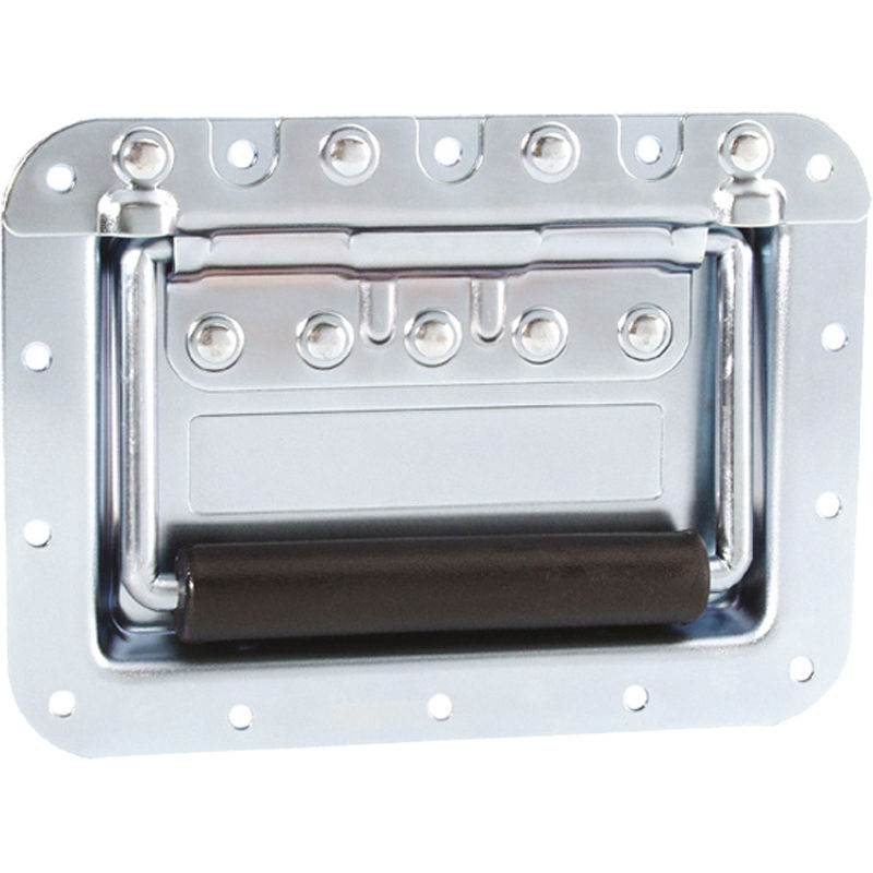 Medium metalna ručica sa oprugom za izradu kofera. Sama ručica je presvučena plastikom. Montaža na 14 rupa. Tacna je izraðena od pocinkovanog lima. Jedan od najpopularnijih modela ručica za izradu flight case kofera.