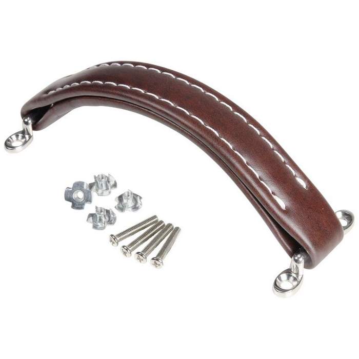 - Kožna ručica sa niklovanim nosačima koja se montira na četiri rupe.