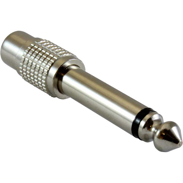 Metalni adapter sa ženskog RCA (činč) na muški džek 6.3mm. Kvalitetan adapter za profesionalnu upotrebu.