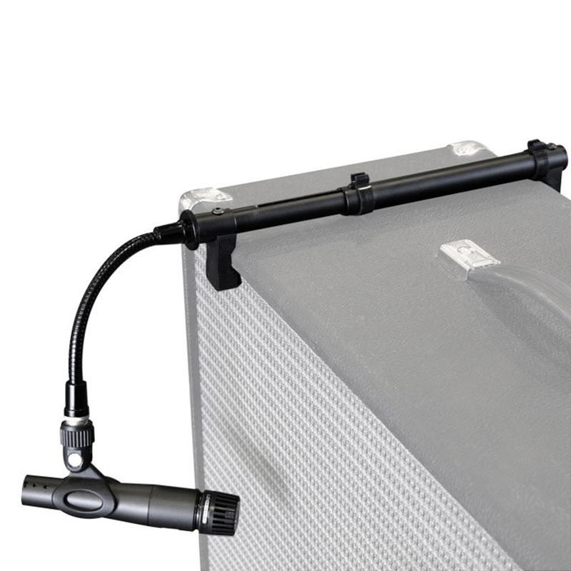 Adam Hall SC BCLMP. This lightweight and compact microphone holder can be mounted on any guitar amplifier or cabinet. The clamp mechanism allows a firm and secure holding of the microphone while the flexible gooseneck allows you to find the perfect micing position. These features will guarantee for a faithful tone reproduction.