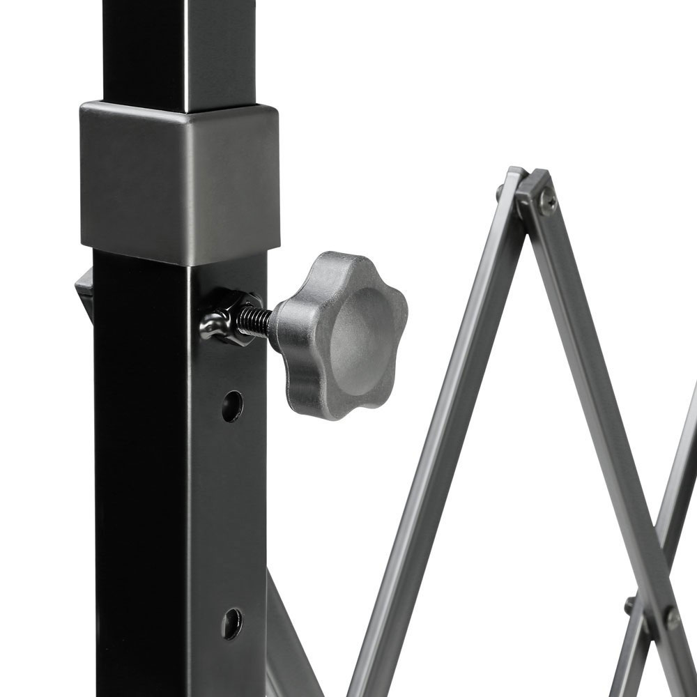 - Adam Hall SKS 05 je podesiv po visini i širini. Visina može da se podesi od 61 do 85 cm. Maksimalne nosivosti do 50 kg. Zahvaljujući kompaktnim dimenzijama (610 mm x 80 mm x 460 mm) ovaj stalak je idealan za transport. Finiš u crnoj boji.