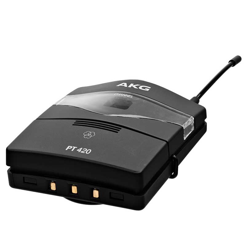 The PT420 is an analog high-performance wireless body-pack transmitter in a small, rugged housing. A professional mini XLR audio connector makes the body-pack compatible with all kinds of guitars, basses, instrumental pickups and headsets. It is designed for stress-free work on small stages, in houses of worship and in conference rooms. The PT420 provides a gain control for perfect adjustment of the input volume and a noiseless on/off/mute switch. A battery-status indicator shows red before the battery goes dead, allowing the user full control of performance time. The package includes a rugged guitar cable.
