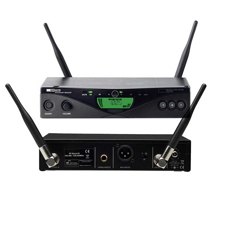 SR470 analog space diversity professional wireless receiver comes in a rugged half-rack metal housing. The enhanced Auto Setup, Environment Scan and Rehearsal mode allows a very quick and easy system setup. The programmable backlight changes color to warn the user of critical operating conditions e.g. transmitter low battery information, audio peaks, or low radio signal strength. A wide range of professional antenna splitters, power supplies, and high quality remote antennas are available to handle complex antenna systems and up to 48 simultaneous wireless channels, even with large covering area.