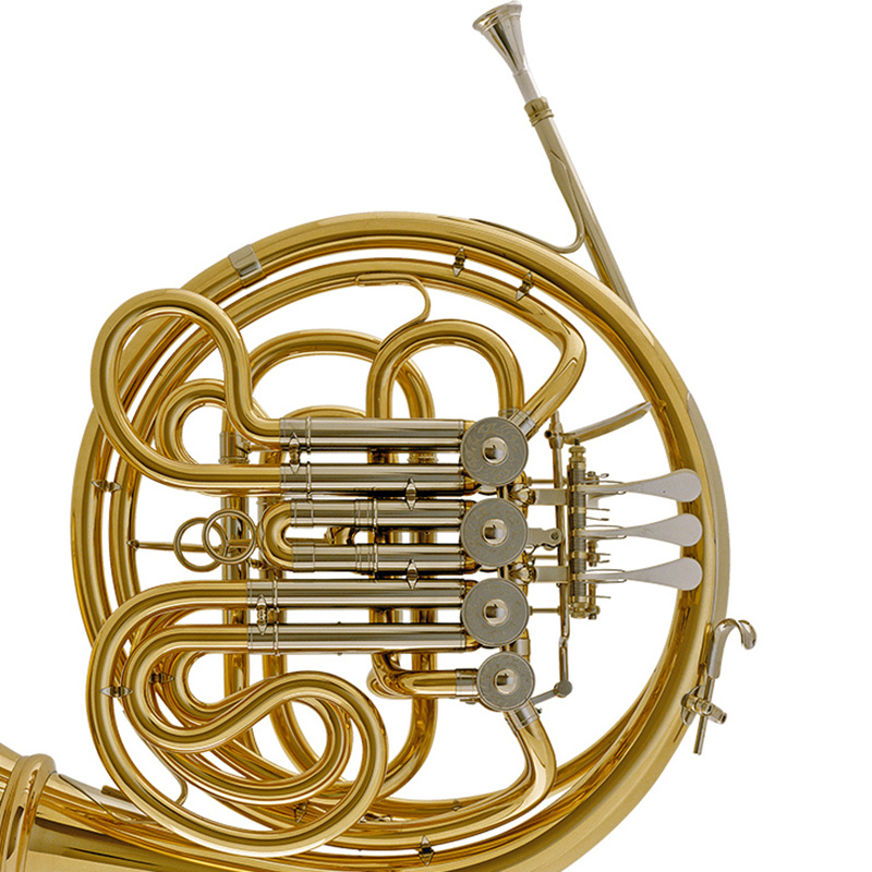 The double horn has established itself as the orchestral instrument of choice. The combination of full Bb and F horn offers the musician great flexibility in intonation and tone. There is also a definite correlation between mass and tonal projection. With full double horns the thumb valve serves to change to either the shorter Bb horn or the longer F horn. Model 200 is the 200-years-Gebr. Alexander anniversary model. It ist similar to Model 1103 and has an engraved nickel silver garland on the bell flare.