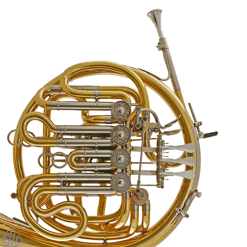 The triple horn covers not only the double horn (B / F) but also the high F horn within the same instrument. Compared to the low F horn, the high F horn is tuned up an octave due to the shorter tube length. This effects that the musician is optimal supported in very high passages and benefits from a more secure high position during concerts.