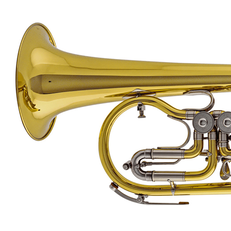 High quality finishing, smooth response and tunable sound. These subjects describe the trumpets and flugelhorns manufactured by Gebr. Alexander. The framework of this series constitute the trumpet and flugelhorn in Bb with cylinder or piston valves. The concert trumpet is also available in C. All models are customizable by selectable options.