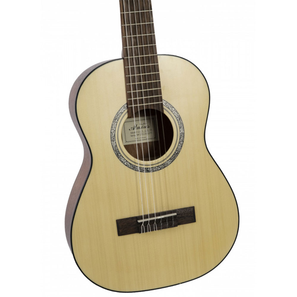 Almires C-15 1/2 klasična gitara namenjena je početnicima i polaznicima u muzičku školu. Pristupačan, svirljiv, i vrlo upotrebljiv instrument. 1/2 veličina, dužina skale 540 mm, gornja ploča od smreke; stranice, leđa i vrat od mahagonija. Open Pore finiš podrazumeva manje laka na trupu i pospešuje rezonantnost, kao i sustain. C-15 karakteriše svetao, ali topao zvuk. Ovo je naša topla preporuka početnicima, ali i svima koji žele instrument za putovanja, jer zbog svoje veličine Almires C-15 1/2 klasična gitara pruža jednostavnost transporta i odlaganja. Jedna od najboljih kupovina u ovom cenovnom rangu.