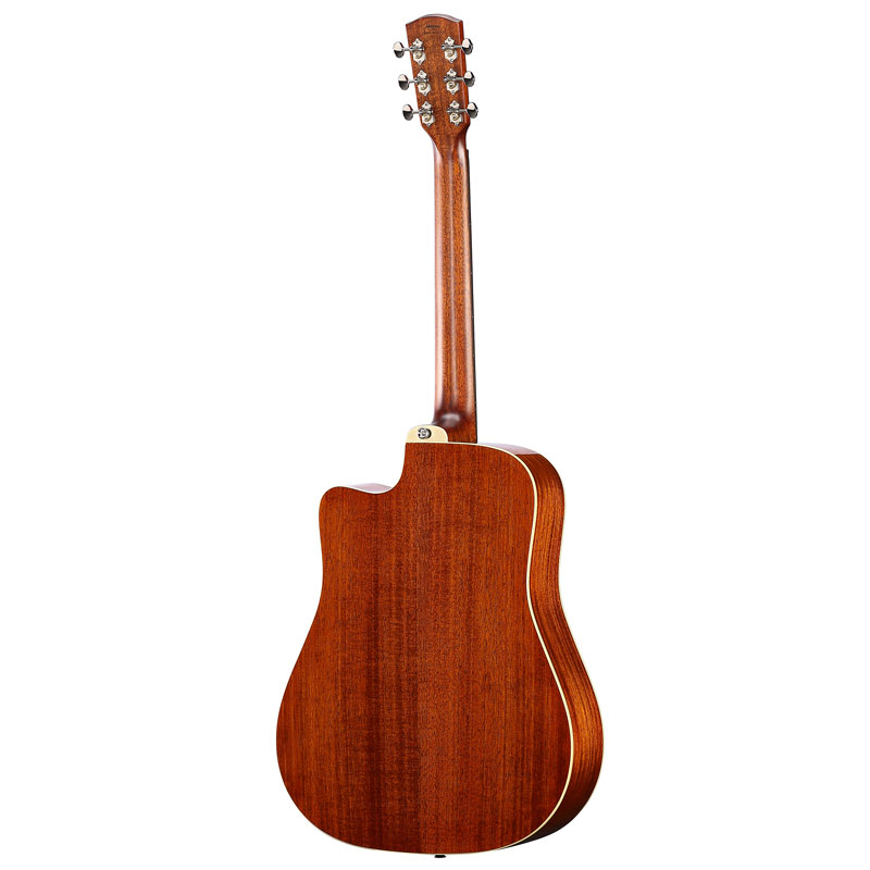 - Zvučno, ova gitara je sve što biste očekivali od potpuno čvrstog Dreadnought tela. Dizajniran je da postigne otvorenu projekciju i široku paletu tonova. Bas frekvencije su jasne i robusne, a spoj Sitke i mahagonija daje jake drvene srednje i svetlucave visoke tonove.