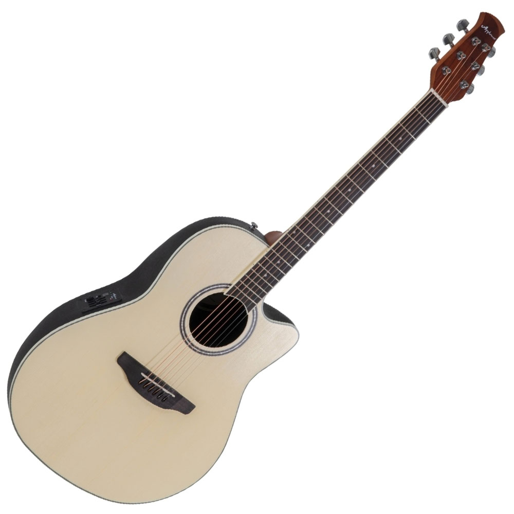 Prepoznatljiva i dokazana konstrukcija, Lyrachord telo srednje dubine, sa isečkom, od kompozitnog materijala, sa gornjom pločom od smreke. Vrat od nato (natoh) drveta sa grifom od ovangkol-a izuzetno udobnog profila, sa 20 pragova, i radiusom od 10 inča. Ovangkol kobilica tradicionalnog Ovation dizajna bez pinova, za poboljšani odziv i sustain. Ugrađena CE304T ozvuka profesionalnog kvaliteta, sa integrisanim štimerom. U elegantnom Natural Satin finišu.