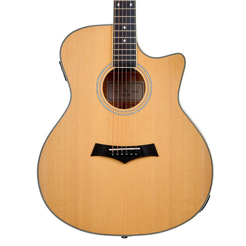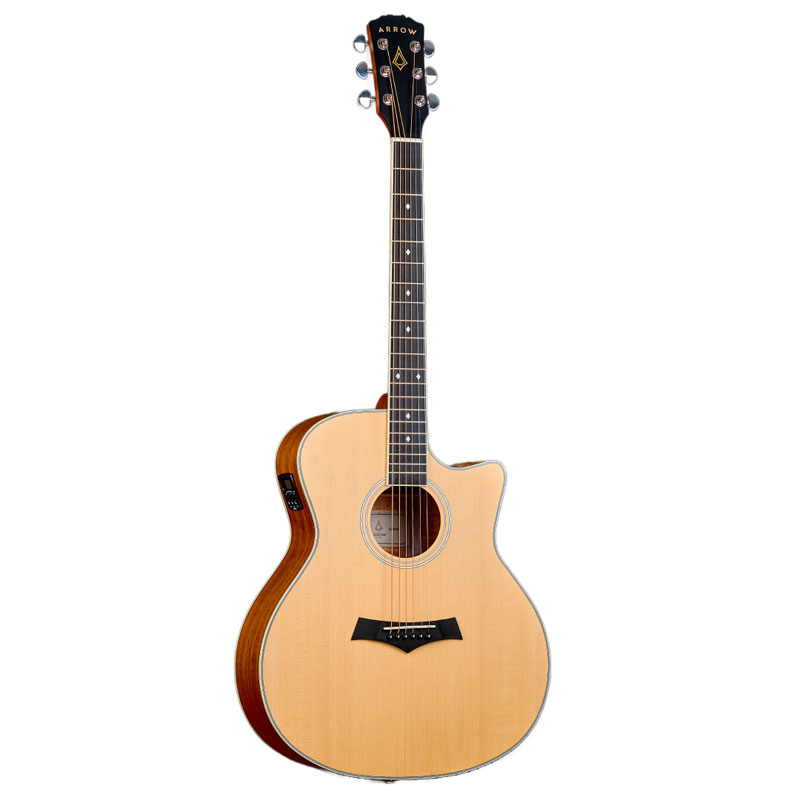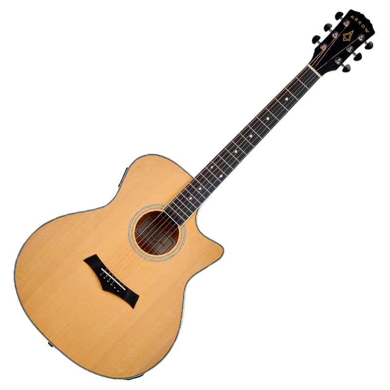 Arrow Gold A CE NT akustična gitara iz serije Gold. Auditorium tip gitare sa ozvukom savršen za svakoga ko ceni odličan zvuk i udobnost sviranja uz klasičan dizajn.