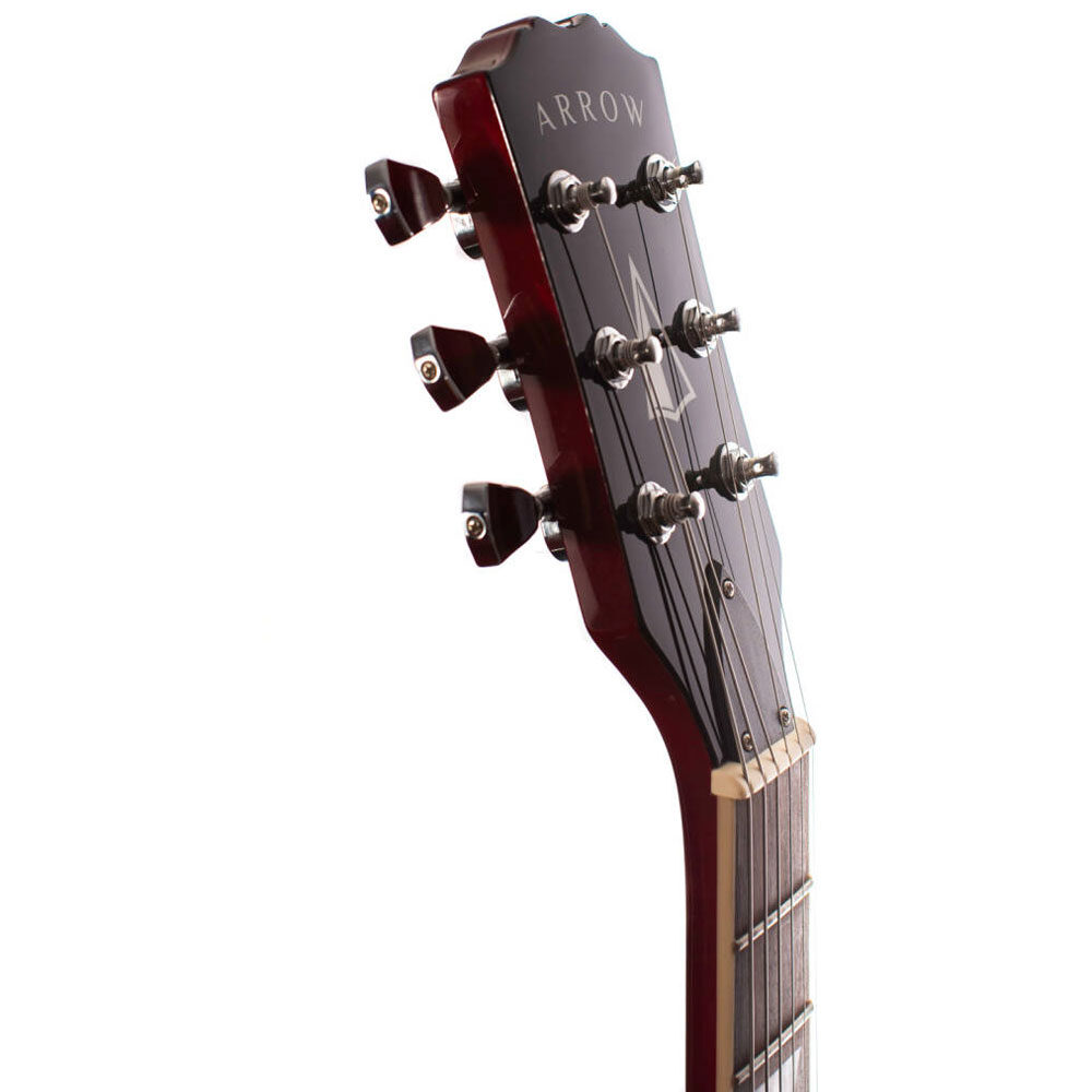 Arrow Twincut SG22 Cherry Rosewood/Black električna gitara je odličan izbor za vašu prvu gitaru. Proizvedena od drveta odličnog kvaliteta, ova gitara daje fenomenalnu rezonantnost. Telo i vrat su napravljeni od mahagonija, dok je fingerboard napravljen od rosewood-a.