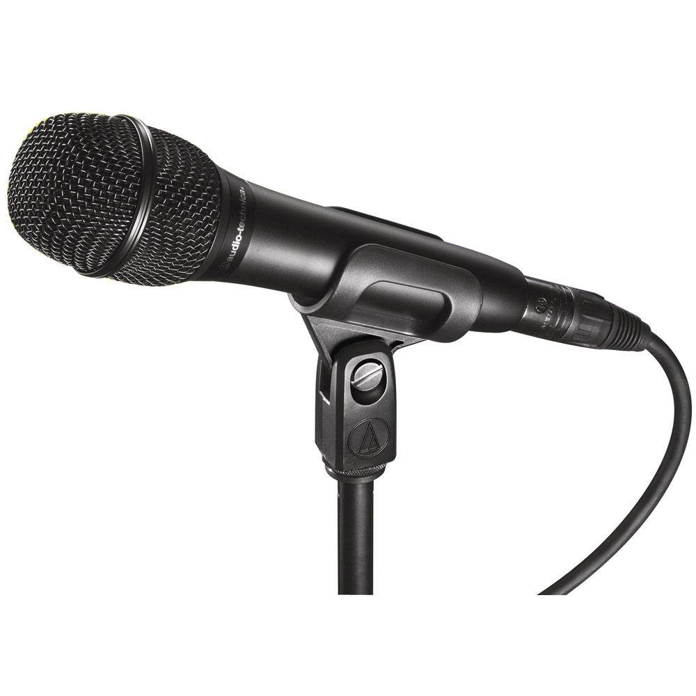 - Accessories: AT8470 Quiet-Flex stand clamp for 5/8"-27 threaded stands; 5/8"-27 to 3/8"-16 threaded adapter; soft protective pouch