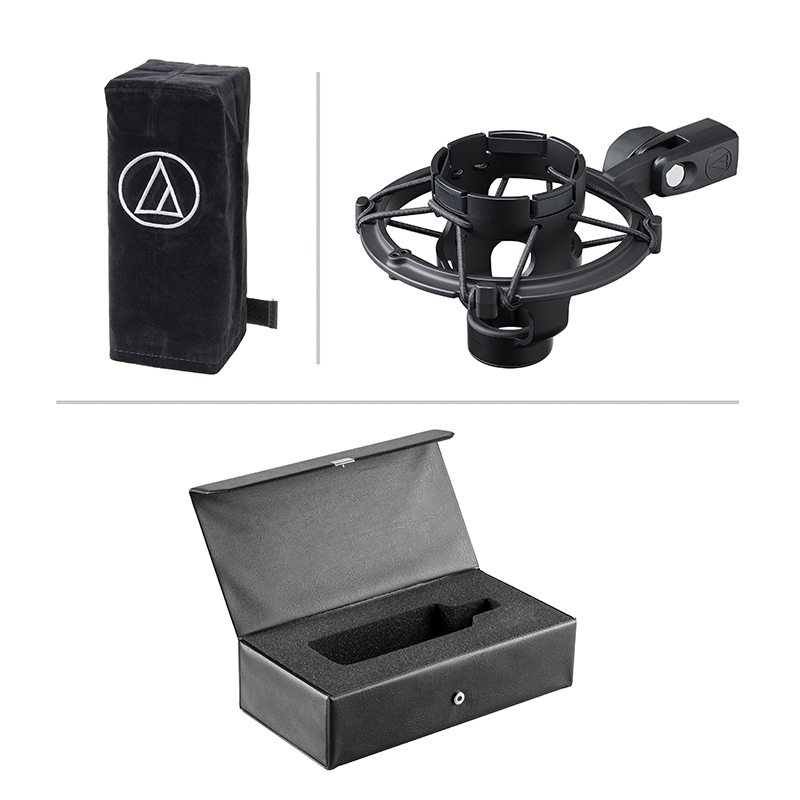 - ACCESSORIES FURNISHED AT8449a shock mount for 5/8"-27 threaded stands; microphone dust cover; protective carrying case
