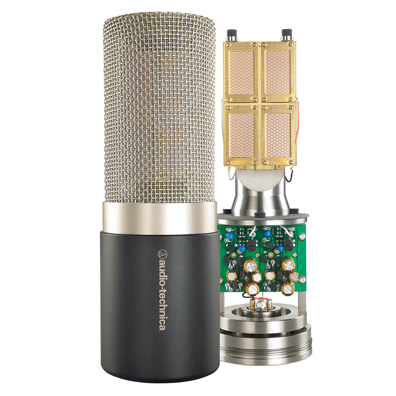 - Four rectangular diaphragms (2 micron) function together as Audio-Technica’s largest-ever element, providing combined surface area twice that of a standard one-inch circular diaphragm