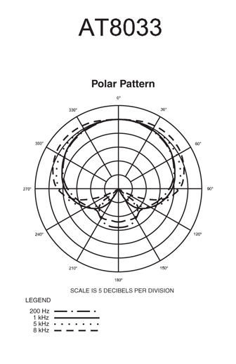 Ideal for general audio acquisition such as interviews, acoustic guitar, percussion, overheads, vocals and more, the AT8033 features high-SPL capability and wide frequency response. Its cardioid polar pattern reduces pickup of sounds from the sides and rear, improving isolation of desired sound source. The mic excels in both studio and stage applications. It operates on battery or phantom power. All-purpose condenser microphone ideal for handheld interviews and general audio acquisition, Excels in both studio and stage applications, Outstanding linearity both on- and off-axis, Features high SPL capability and wide frequency response, Operates on battery or phantom power, RoHS compliant - free from all substances specified in the EU directive on hazardous substances