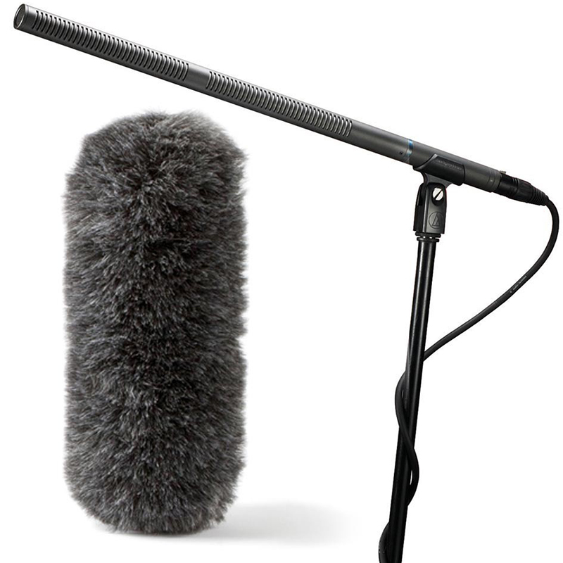- Accessories: AT8405a stand clamp for 5/8"-27 threaded stands; 5/8"-27 to 3/8"-16 threaded adapter; AT8132 windscreen; battery; protective carrying case