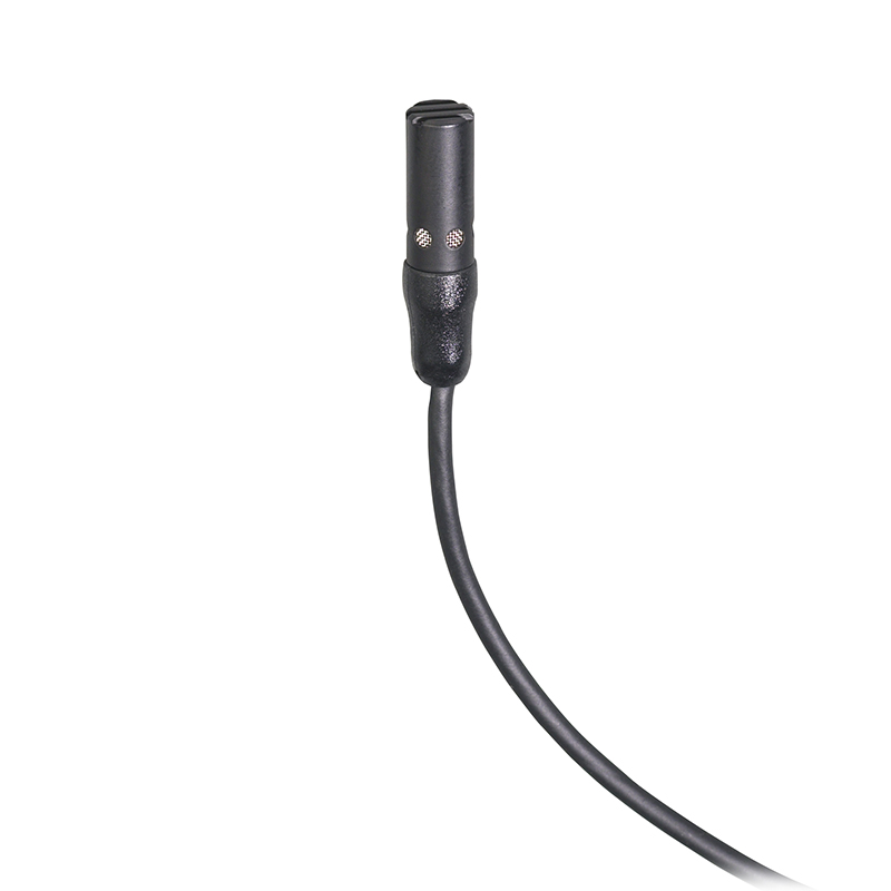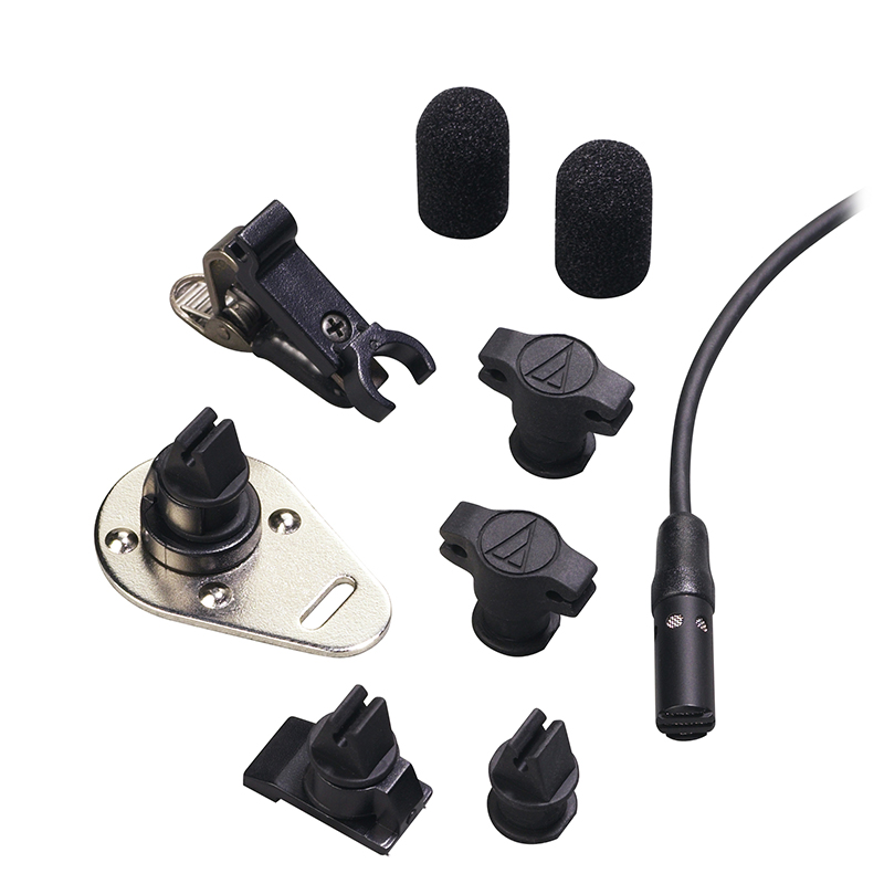 Designed to be worn as a lavalier or hidden in clothing, Audio-Technica’s discreet-design cardioid AT898 offers maximum intelligibility, accurate voice reproduction and unobtrusive appearance for use in houses of worship, broadcast studios, theaters, etc. Its switchable low-frequency roll-off reduces sensitivity to popping. Battery or phantom power.