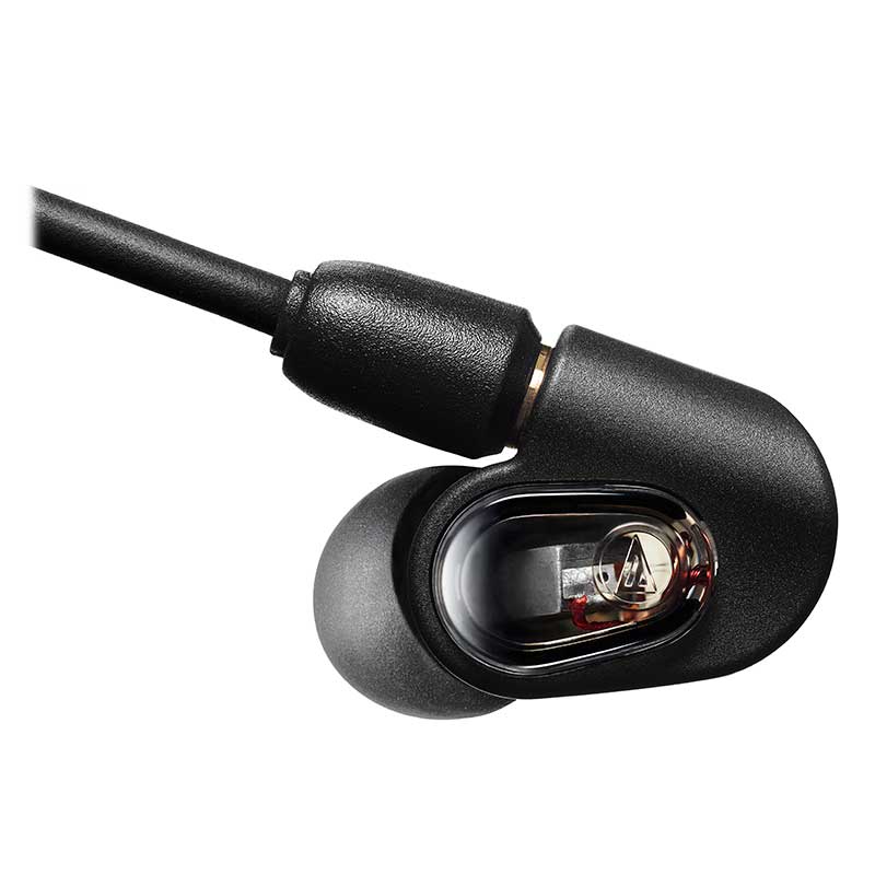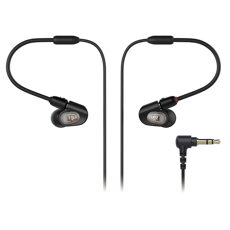 The ATH-E50 features specially designed housings that provide excellent isolation, ensuring confident, comfortable stage performance. To address the evolution of modern music production, this model also excels at providing a consistent reference in every sonic environment, making it the ideal choice for the producer on the road. The sound isolation and comfort offered by the ATH-E50 are enhanced by the four sizes of included silicone eartips (XS/S/M/L), which allow you to create a custom fit. The ATH-E50 also comes with a detachable 1.6 m (5. 2') cable, with newly developed A2DC (Audio Designed Detachable Coaxial) connectors at the headphones and a 3.5 mm (1/8") stereo mini-plug output, and a carrying case.