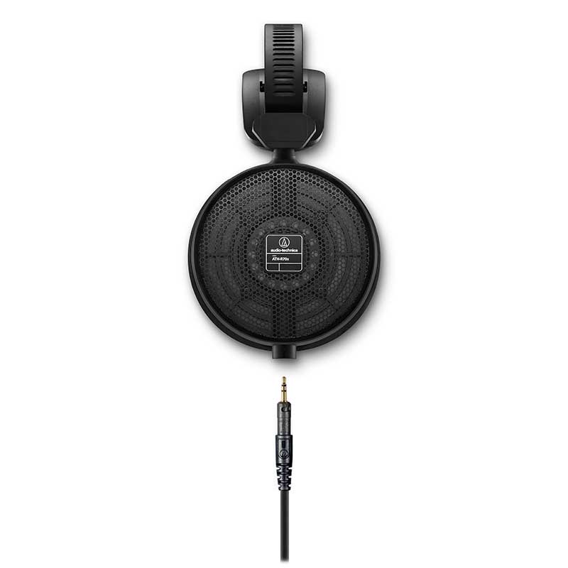 The ATH-R70x is Audio-Technica’s first pair of open-back reference professional headphones. Together with the ATH-M70x, they stand as a flagship model in A-T’s lineup of professional studio headphones. Featuring specially designed drivers and acoustically transparent housings fashioned from aluminum honeycomb mesh, these headphones provide an accurate and natural open-back sound. They also incorporate a new, improved design of our popular 3D wing support system to provide even greater comfort during the prolonged use often required in professional settings. Robust yet lightweight, and equipped with a unique, dual-sided detachable cable that automatically maintains proper stereo orientation (no matter how it’s attached), the R70x headphones are built for lasting comfort, convenience and audio purity.