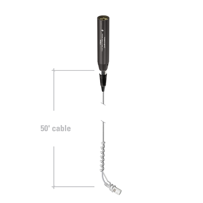 - CABLE 15.2 m (50') long (permanently attached to microphone), 3.2 mm (0.13") diameter, 2-conductor shielded cable, terminated with TA3F-type connector