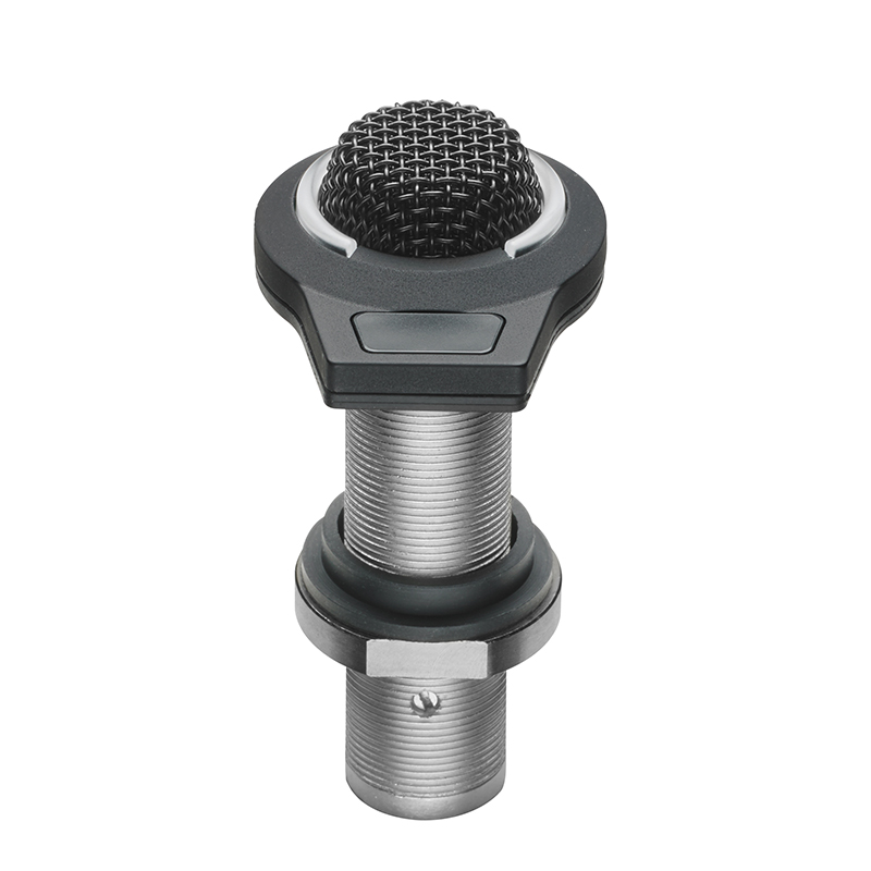 With its low-profile design that mounts unobtrusively in tabletops for minimum visibility, the ES947/LED cardioid condenser boundary microphone provides clear, highly intelligible audio that is perfect for sound reinforcement, professional recording and teleconferencing, television and other demanding sound pickup applications. Protected by a rugged all-metal case with a two-layer steel mesh grille, the microphone’s cardioid polar pattern affords a 120° pickup angle, while its UniGuard® RFI-shielding technology provides outstanding rejection of radio frequency interference (RFI). Users can easily toggle between mute and live audio thanks to the microphone’s capacitive-type touch-sensitive switch. An integral Red/Green LED ring indicates the mute status, staying green when the microphone is live and turning red when it is muted.