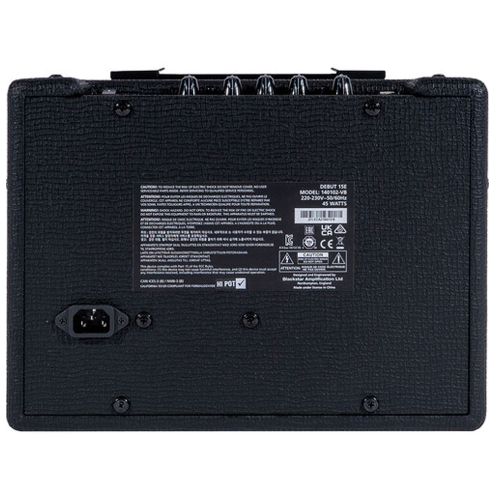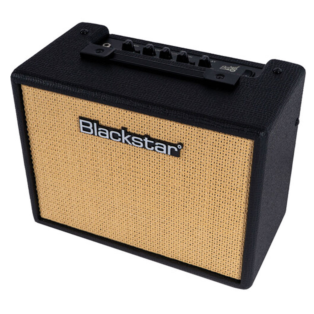 Blackstar Debut 15E Black gitarsko pojačalo poseduje clean i overdrive kanal kao i ugrađeni delay. Zahvaljujući ISF (Infinite Shape Feature) ton kontroli možete da birate između američkog tona sa čvrstim basevima i agresivnim srednjim ili manje agresivnog britanskog tona. Izlaz za slušalice istovremeno služi i kao line out, i poseduje autentičnu simulaciju kabineta.