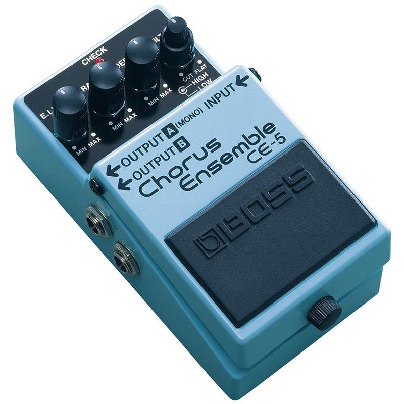 Boss CE-5 Chorus Ensemble. Od blagog, prirodnog chorusa do prodornog stereo chorus zvuka koji je postao veoma popularan. Ova pedala pokriva široki spektar chorus zvukova. Omogućuje veoma široki frekventni opseg kao i filtere za visoke i niske frekvencije.