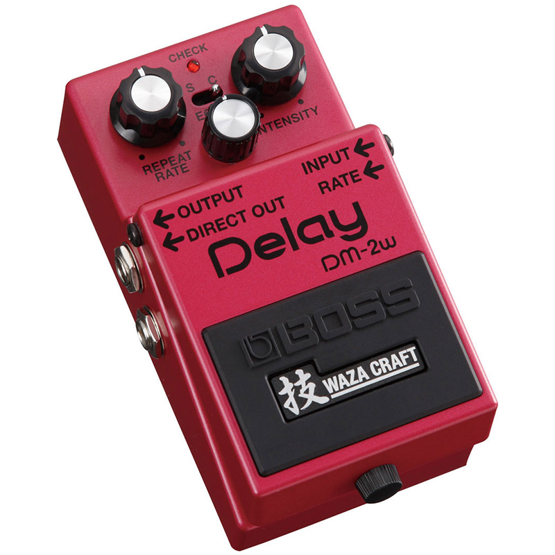 Boss DM-2W Waza Craft Analog Delay. Iako je prestala da se proizvodi još daleke 1984. godine. BOSS DM-2 Delay pedala je bila cenjena zbog toplog "bucket brigade" analognog delay zvuka. Kod Waza Craft DM-2W je sjajan zvuk ove cenjene pedale unapređen sa izborom modusa rada radi još više mogućih stilova primene u današnjim muzičkim stilovima. Sa potpuno analognom elektronikom DM-2W je u Standard modu potpuno istog zvuka kao i originalna DM-2 pedala i delayom od 20-300 ms. Prelaskom u Custom mod se menja karakter zvuka na čist analogni zvuk sa duplo dužim delay vremenom. Bossovi inženjeri su od samog početka stremili postizanju najboljeg gitarskog tona. Koristeći bilo koju tehnologiju od starih analognih do najnovijih DSP elektronskih kola. U tom duhu predstavljamo Svetu novu Waza Craft seriju. "Waza" je u Japanu termin koji se koristi za umetnost i tehniku i zato su ove pedale označene Waza simbolom kao vrhunac Boss kvaliteta i dizajna. Pošto je Boss u Japanu nakon pažljive kontrole zvuka odobrio proizvodnju. Waza Craft pedala, ova serija poseduje zvuk i dinamiku samo najboljih analognih komponenti, sa usavršenom elektronikom.