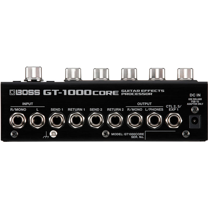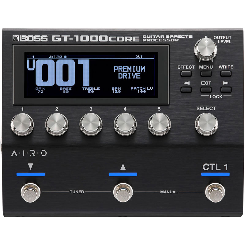 Boss GT-1000Core gitarski efekt procesor. Amazingly powerful and ultra-versatile, GT-1000CORE delivers the most complete guitar and bass processing experience available in a single stompbox. The full DSP muscle of the flagship GT-1000 lives inside this mini juggernaut. Driving class-leading sound quality, advanced AIRD technology, 24 simultaneous effects blocks, and over 140 unique amp/effect types for unlimited creative expression. GT-1000CORE fits into any pedalboard setup and works equally well as a standalone processor for playing live and in the studio. And with flexible I/O and vast control support. It's right at home as the core of any rig.