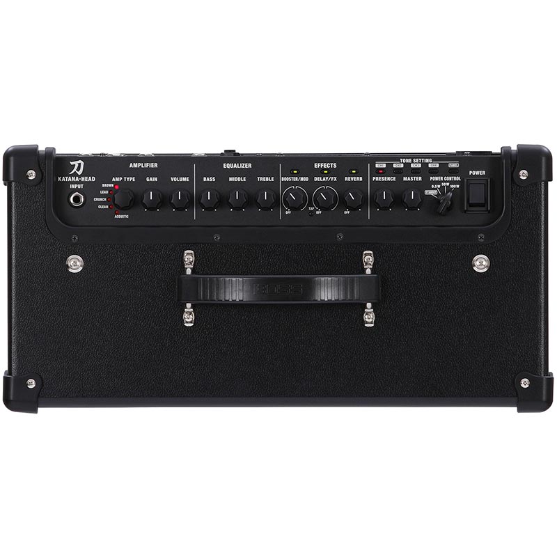Boss KTN-HEADMK2 gitarsko pojačalo. Katana-the traditional sword carried by the historic samurai of Japan-is a symbol of honor, precision, and artistry in Japanese culture. Adopting the majestic sword's name with pride. Katana series presents guitar amplifiers with smooth, cutting tones honed by generations of dedication and expertise. Born of the development process behind the acclaimed Waza amplifier. These innovative amps embody BOSS's determined pursuit of the ultimate rock sound. Featuring proprietary circuit designs and meticulous tuning. Katana series combines traditional craftsmanship and breakthrough functions to produce true next-generation rock amplifiers. Compact and powerful, the 100-watt Katana-Head delivers sharply defined rock tones with rich, commanding presence. The amp also includes integrated access to 55 BOSS effects, which are customizable using the free BOSS Tone Studio editor software. Up to 15 different effects can be loaded at one time, enabling you to build fully prepared sounds inside the amp. In addition, the versatile Katana-Head is equipped with an effects loop and MIDI for integration with advanced rigs, and features a convenient built-in monitor speaker for tone preview and practice without a cab.