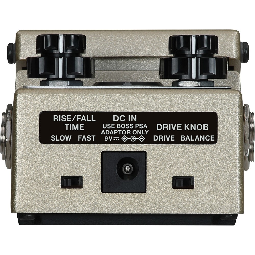 - EFFECT ON/OFF pedal, SLOW/FAST pedal, MODE knob, RISE TIME knob, EFFECT LEVEL knob, DIRECT LEVEL knob, BALANCE knob, OVERDRIVE knob, SLOW SPEED knob, FAST SPEED knob, DRIVE TYPE switch
