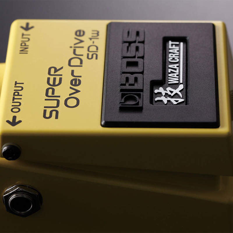 Boss SD-1W Waza Craft Super Overdrive. Glavni inženjeri BOSS kompanije su strastveno prionuli na posao kako bi napravili Waza Craft SD-1W pedalu. Koja će se dopasti svim ljubiteljima kvalitetnog zvuka. Za ljubitelje izuzetno prefinjenog zvuka SD-1W je unapređenje poznate BOSS overdrive pedale sa kompletno analognom elektronikom. U Standard modu kreira klasični zvuk SD-1 pedale. U Custom modu poseduje sasvim novi gain i ton. Bossovi inženjeri su od samog početka stremili postizanju najboljeg gitarskog tona koristeći bilo koju tehnologiju od starih analognih do najnovijih DSP elektronskih kola. U tom duhu predstavljamo Svetu novu Waza Craft seriju. "Waza" je u Japanu termin koji se koristi za umetnost i tehniku i zato su ove pedale označene Waza simbolom kao vrhunac Boss kvaliteta i dizajna. Pošto je Boss u Japanu nakon pažljive kontrole zvuka odobrio proizvodnju, Waza Craft pedala, ova serija poseduje zvuk i dinamiku samo najboljih analognih komponenti, sa usavršenom elektronikom.
