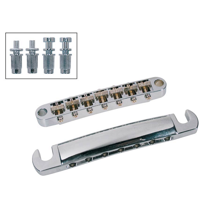 Boston BT-167-C komplet za sedmožičanu gitaru - tune-o-matic kobilica i anker, sa čaurama i nosećim šrafovima, u hrom boji. Radijus 16 inča, razmak žica 62.6 mm, razmak rupa za montažu 84 mm. Odličan materijal i izrada omogućavaju optimalan transfer energije žica, i dugotrajan pouzdan rad. Kvalitetan i pristupačan deo za zamensku ili prvu ugradnju.