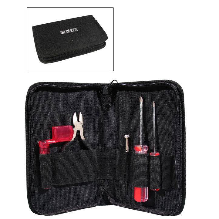 Tool set for guitar with pouch, pliers, string winder, screwdrivers.