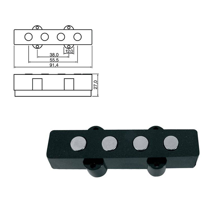 Magnet za jazz tip bas gitare, za nek poziciju. Keramičko jezgro. Klasičan model. Crne boje.
