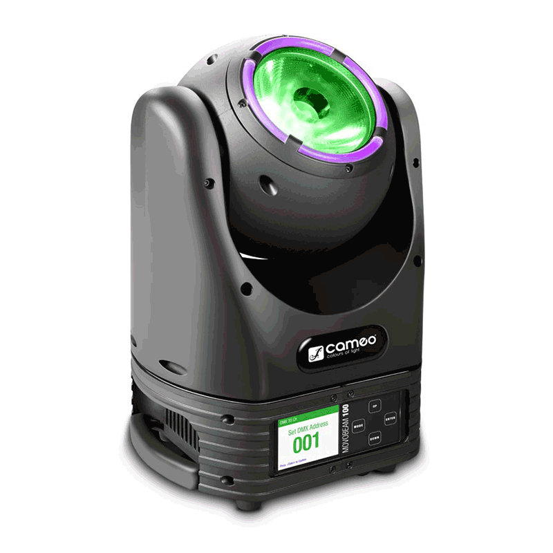 The MOVO® BEAM 100 is a powerful ultra-fast moving head delivering a narrow and defined 5,5° beam. A central high-performance 60 watt Osram LED produces rich RGBW mixes with saturated primary colours, subtle pastel hues and natural shades of white. It is surrounded by an RGB LED ring with 4 individually controllable segments to enable a multitude of spectacular beam effects. With its 1,000 Hz refresh rate the fixture is perfect for motion picture and TV applications. Driven by two high-speed, high-torque motors the MOVO® BEAM 100 provides continuous pan and tilt with smooth precision. It sports a bright 2.5" TFT display with touch sensitive buttons for convenient configuration, DMX control and amazing automated modes. Linear dimming with 4 selectable curves, a rapid strobe and colour temperature correction add to a brilliant and exciting performance. The MOVO® BEAM 100's compact compound housing features fan cooling to ensure reliable operation and extended LED life. It comes with an omega bracket for a variety of mounting options.