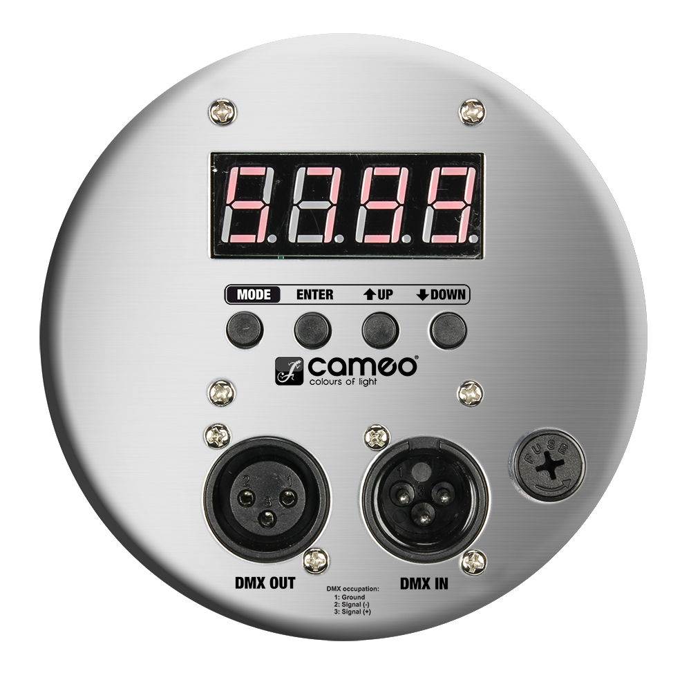 Cameo P64 Q 8W BS je PAR 64 LED u rasporedu RGBW 4-u-1 18x8W. Sistem smešten u alu kućištu sive boje. Odličnih karakteristika sa 18 ultrasvetlih 8 W QUAD kolor LED dioda. Širina svetlosnog snopa je od 25° potrošnja energije 180 W. Kućište ima duple držače tako da je predviðena za kačenje ili podnu postavku.
