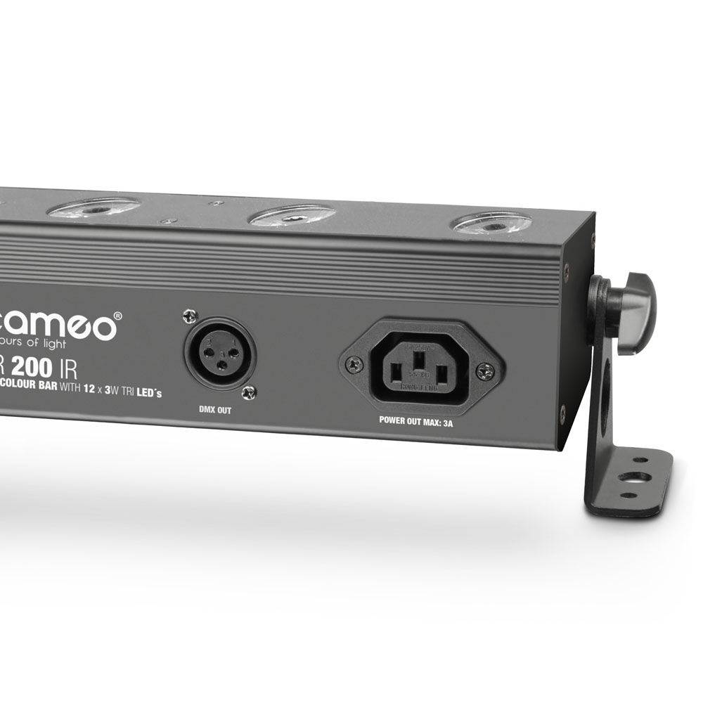 Cameo TRIBAR 200 IR je RGB LED bar sa rasporedom 12 x 3 W. Poseduje mogučnost daljinskog upravljanja sa daljinskim upravljačem. Poseduje 12 ultra jakih LED-ova, tihi režim sistema hlaðenjenja kao i 5 DMX modova. Savršen je za svestran dizajn rasvete. LED-ovi su kontrolisani individualno u kvartetima. Ugao snopa svetla od 20°, standalone režim, master i slave modove sa 12 autorun programa i ugraðenim mikrofonom za kontrolu uz pomoć zvuka. Na zadnjem panelu se nalazi displej sa 4 tastera i IR daljinski upravljač.