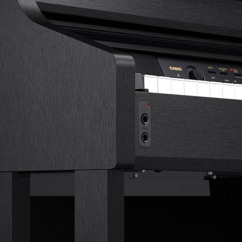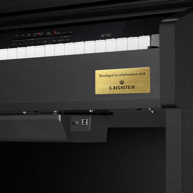 Casio AP-710 BK C7 električni klavir. The AP-710 delivers the world-class piano sound and feel that are the hallmarks of the Celviano series. Unlike most digital pianos, the AP-710 gives you the experience of owning three of the world’s most legendary and coveted grand pianos. With enhanced piano tones and much more, the AP-710 delivers an incredibly detailed piano experience. Casio’s AiR Grand Sound Source provides not just one, but three of the world’s finest grand pianos. Dubbed the Berlin, Hamburg, and Vienna Grands, each one is the result of countless hours of precise analysis and study of their unique characteristics. They are faithful and expressive recreations of these distinctive instruments. String and damper resonance, mechanical sounds, and other subtle nuances add richness and detail, completing the piano experience. A total of 26 Tones are included, including other essential instruments like organs, electric pianos, harpsichord, and more.