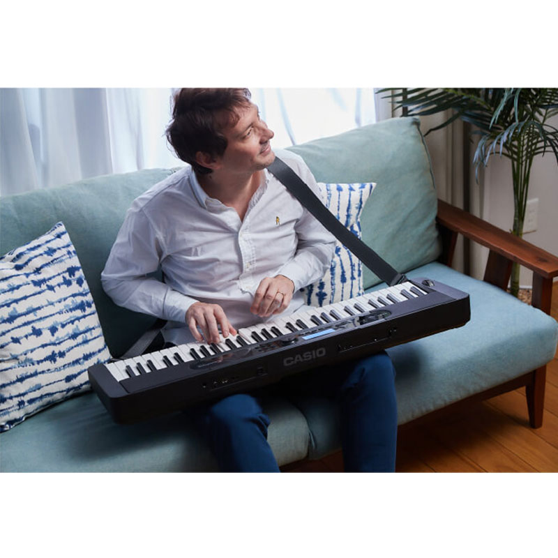 Sa CT-S400 ne možete da se osećate sputano. Ubacite šest AA baterija, zakačite kaiš i svirajte gde god da se nalazite.