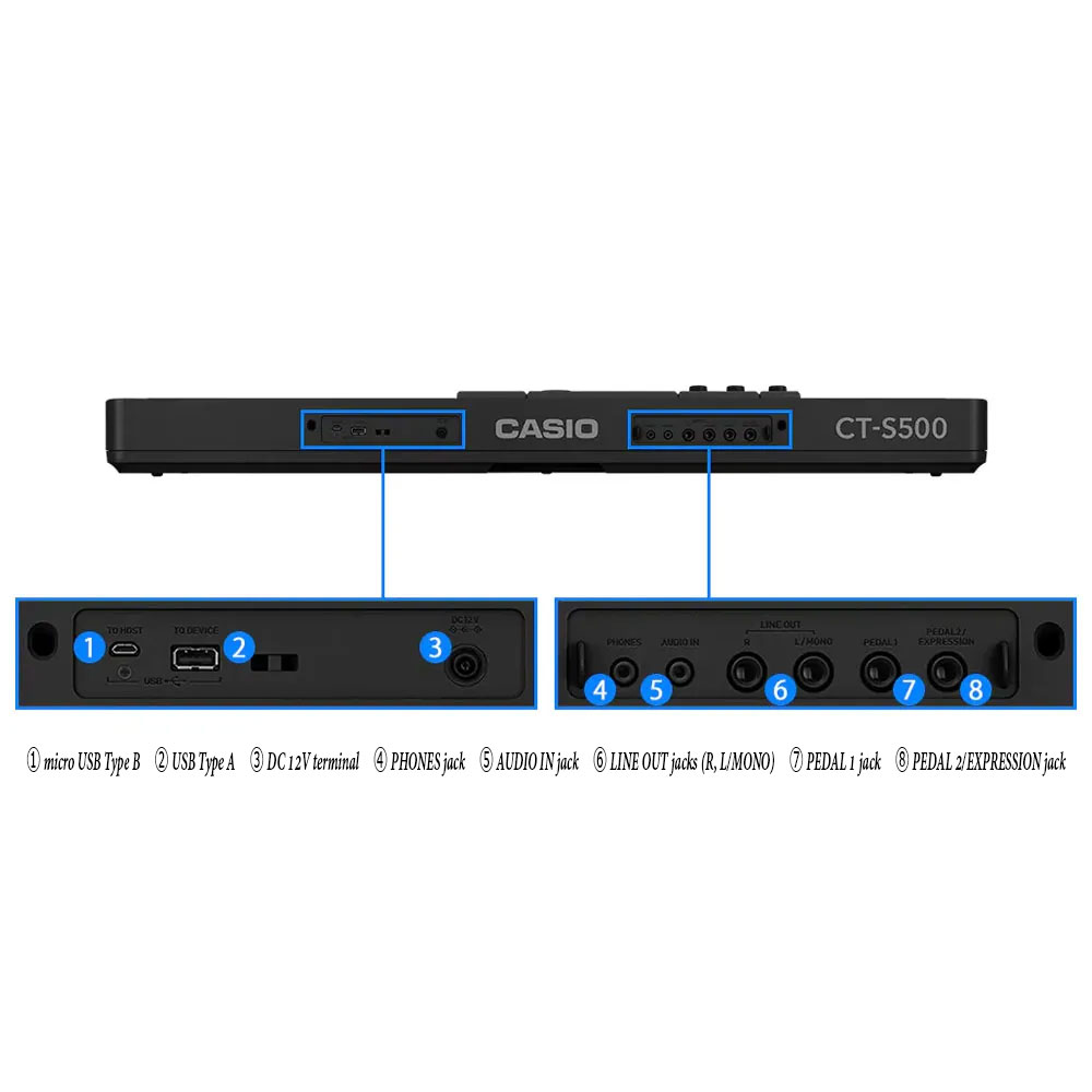 Casio CT-S500 klavijatura je ultra prenosiva klavijatura koja zvuči fenomenalno i odlična je zasviranje kod kuće ali i u pokretu. Sa velikim izborom neverovatnih tonova i ritmova, CT-500 će inspirisati muzičare svih dobi, sviračkih sposobnosti i budžeta.