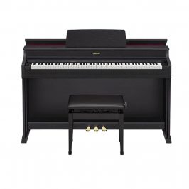 Casio GP-310 WE C7 električni klavir. The world's finest hybrid pianos are now even better. Introducing the new Celviano Grand Hybrid GP-310 Piano. The GP-310 is the Perfect Combination of Innovation and Tradition. From the moment your hands touch the keys, the GP-310 Grand Hybrid delivers the authenticity your performance demands. The revolutionary Natural Grand Hammer Action keyboard is made with full-length wooden concert grand piano keys, using the same materials and processes as the C. Bechstein concert grand pianos. A keypress sends a hammer along the same vertical path as a grand piano, with the same essential weighting and pivot points, resulting in a true and uncompromising piano touch.