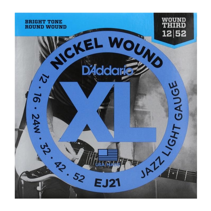 D'Addario EJ21 12-52 žice za električnu gitaru su pravi izbor za džezere ili ljubitelje drop štimova. Round wound nickel komplet sa motanom trećom žicom. Provereni i dokazani D'Addario kvalitet koji traje već decenijama. U pitanju je niklovana čelična žica koja je precizno namotana na heksagonalno jezgro od ugljeničnog čelika. Krajnji rezultat su XL Nickel Wound, najpopularnije D'Addario žice sa dugotrajnim svetlim tonom, koje obezbeđuju odličnu intonaciju. EJ21 su idealne za širok dijapazon gitara i muzičkih stilova.