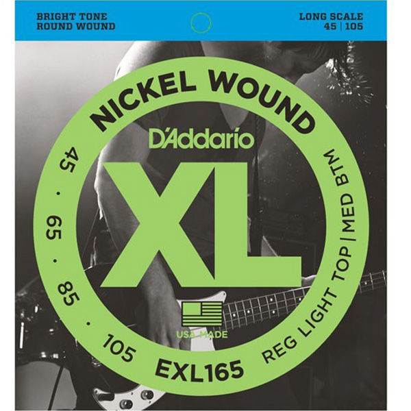 - D`Addario poznati kvalitet žica. D`Addario EXL165 set žica za četvorožičanu bas gitaru. Namenjene za bas gitaru sa dugom skalom, debljine 45, 65, 85, 105 od nikla.