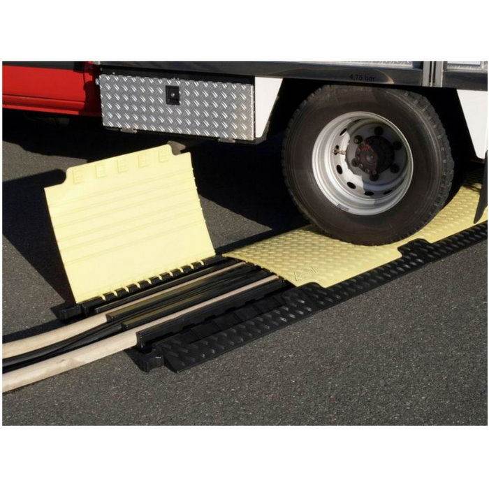 Industrijski zaštitnik za kablove i cevi. Predviđen za polaganje strujnih kablova ili vatrogasnih cevi. Otporan na ulje, benzin i kiseline, može izdržati teret kamiona.